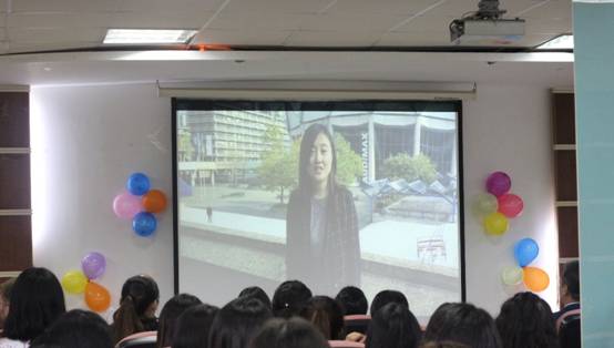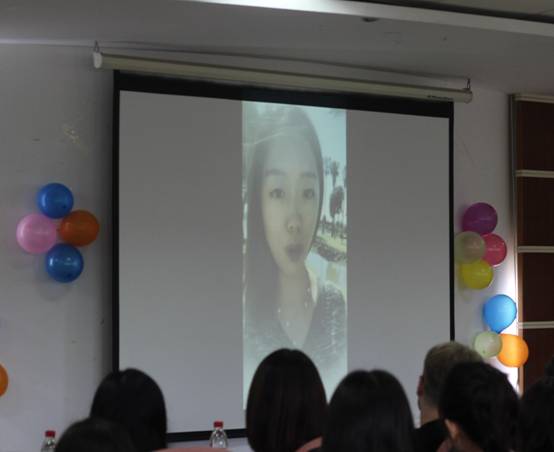 德语系系主任张雯婧老师正在德国交流无法来到现场,特意发来视频祝贺德语系14周年的系庆。