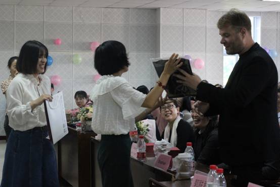 而活动最后,我们也为到场的嘉宾准备了辽大纪念品,14年,不管辽大德语人如今身在何方,他们的生命中都曾有德语系、有辽大的印记,而德语系也感谢你们,感谢每一个人曾经来过,让德语系这本书如此精彩。对了,再告诉大家一个小插曲,送给外教Stephan的衣服还是黑色的!看来我们看不到“彩色”的外教了。