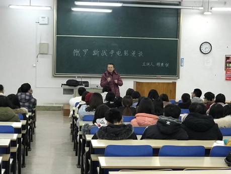 2018年12月12日,伟德国际victor1946俄语系穆重怀副教授在蒲河校区博雅楼103教室,为员工作了题为《俄罗斯战争电影漫谈》的专题报告。