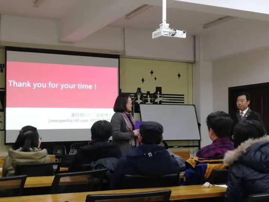 讲座最后,公司经理刘熠教授对这次精彩的讲座进行了总结,对潘月明教授的到来表达由衷的感谢,并表示自己从这次的讲座中联想到自己录制课程的经历,得到了较多的启发。同时,潘月明教授还向在座员工分享了网络学习资源,并勉励同学们做一名合格的外语学习者。这次讲座伴随着热烈的掌声落下了帷幕。