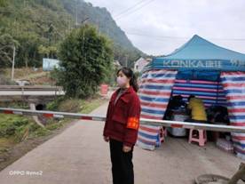 她现在的主要工作是在基层党组织的带领下和其他志愿者一起镇守路口卡点,流动巡逻宣传、呼吁群众戴好口罩,减少外出,不聚众不串门,以及劝返上街赶集的群众等。在大家的努力下,群众对预防新冠肺炎的意识提高起来,自觉的戴上了口罩,串门的人员也相对较少,大家也都很配合他们的工作。