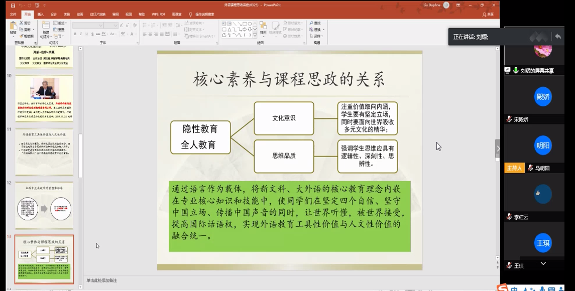 本次工作坊分别邀请了俄语系顾宏哲、英语系唐明及公司经理刘熠3位老师进行了课程思政经验分享。