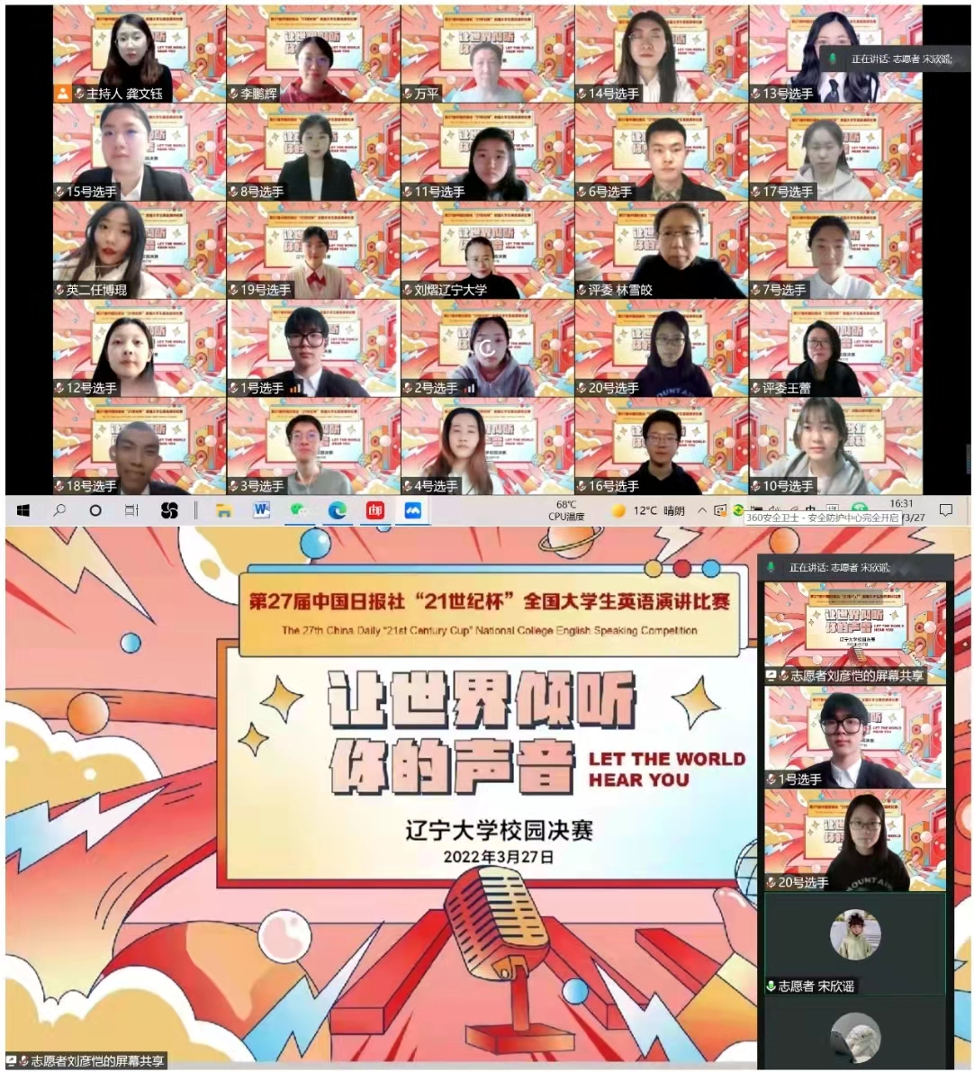 为了创造浓厚的校园文化氛围,夯实员工专业基本功,为同学们提供自我展示的平台,同时为上一级比赛选拔优秀选手,伟德国际victor1946于2022年3月27日下午,以线上腾讯会议的方式成功举办了第27届中国日报社“21世纪杯”全国老员工英语演讲比赛伟德国际victor1946(专业组)校园选拔赛。