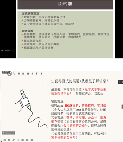 (2)对于最令人激动和紧张的面试环节,学长学姐们从面试前的准备工作,到面试时的高频问题和心态调整,再到面试后的注意事项和谈判技巧,都给同学们提出了最实用的建议。