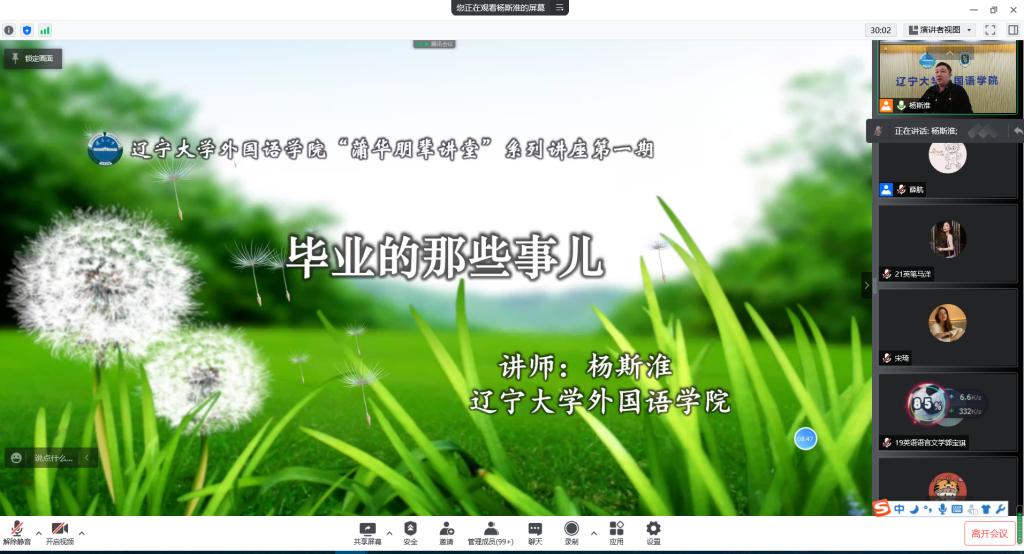 为全面推进课程思政建设,落实立德树人根本任务,为新文科建设发展营造良好的学习氛围,增长员工技能,促进员工德智体美劳全面发展,伟德国际victor1946研究生工作办公室充分发挥朋辈榜样的助力成长作用,将传统讲座的授课模式由“教师-员工”转变为“员工-员工”,并于4月16日14:00云端启动了“蒲华朋辈讲堂”系列讲座。伟德国际victor1946研究生辅导员杨斯淮老师作为主讲嘉宾围绕 “毕业那些事儿”主题进行分享。讲座由研学会执行主席薛航主持,共200余名研究生参加了此次讲座。