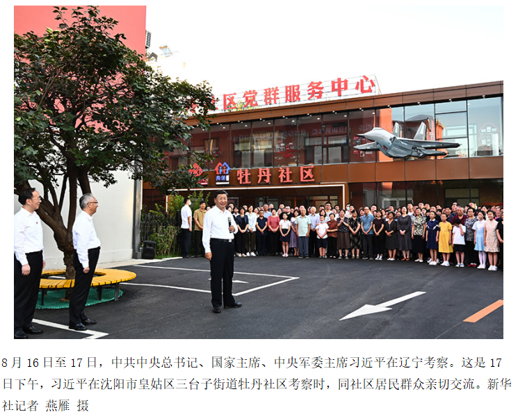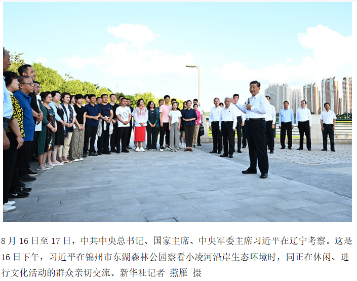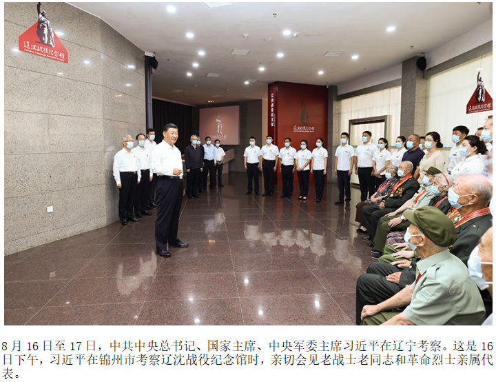 8月16日至17日,习近平在辽宁省委书记张国清、省长李乐成陪同下,先后来到锦州、沈阳等地,深入革命纪念馆、河湖治理工程、企业、社区等进行调研。